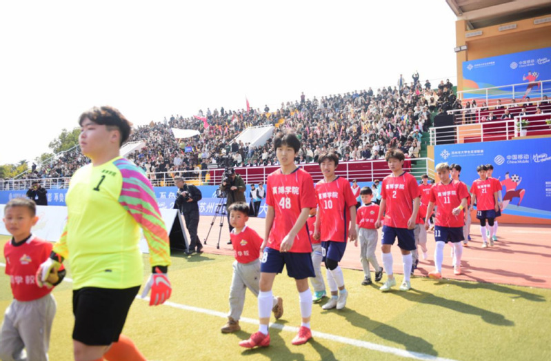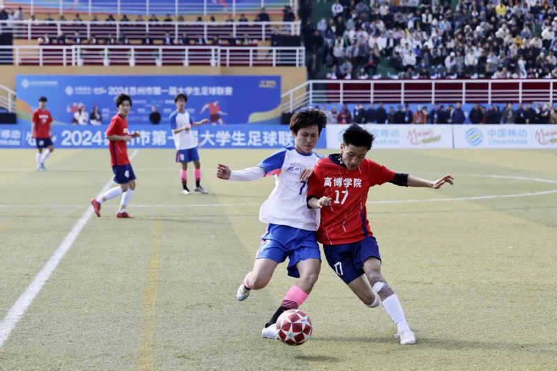 下午2点,随着开赛哨响,苏州首届大学生足球联赛拉开序幕。首场比赛,我校在客场对阵苏州城市学院,双方大战90分钟,最终以2:3惜败。开幕式上,苏州市大学生实习就业计划正式发布。