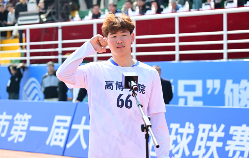 开幕式上,我校学生谈鑫伟作为球员代表进行宣誓。