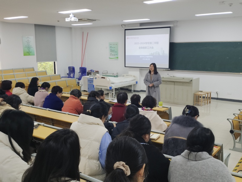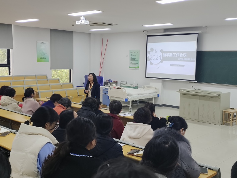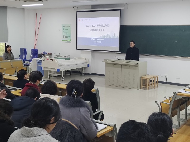 为了更好地部署新学期的工作,提升教育教学质量,3月6日,医学与公共服务学院在12-103教室召开新学期全体教职工大会。会议由蔡金娟副院长主持,学院党政领导、全体教职工参会。