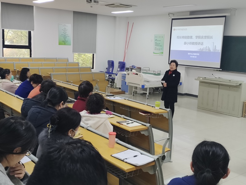 学院院长孙小娅教授回顾了2023年学院各项工作,部署了本学期教科研主要工作,强调了本学期将在科研团队建设、教学常规管理、见习实习工作、专本协同教学、学生岗证融通等方面需要进行深入的教学研究与质量提升。孙院长要求全体教职员工要加强学习,提高政治站位,充分发挥课堂教育主渠道作用,教书育人,为人师表,规范课堂用语,传播正能量。同时,她希望学院教职员工特别是党员同志,要充分发挥党员应有先锋模范作用,结合自己的专业特长与岗位职责,带头钻研业务,潜心研究,带领周围同事发挥团队协助精神,在推动学院高质量发展中,做出各自应有的贡献。
