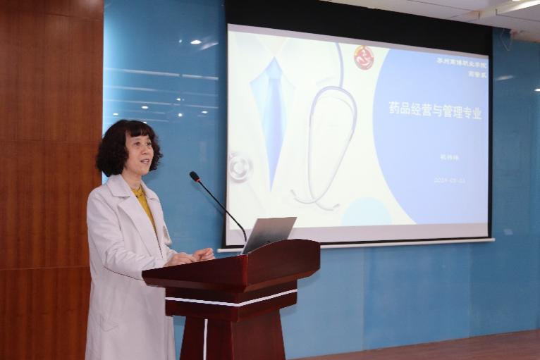 药品经营与管理专业系主任祝祎玮教授在会上就药管专业的课程设置、师资情况、学生人数结合行业发展作了详细介绍与解读。祝教授还进一步介绍了如何把药事管理与法规、药品采购与销售实务等课程融入到教学课程体系中,从专业实际需求出发,本专业依托有力的师资资源、优质的课程建设队伍以及卓越的校企合作平台,旨在打造更具行业规范性、社会美誉度的品牌专业。