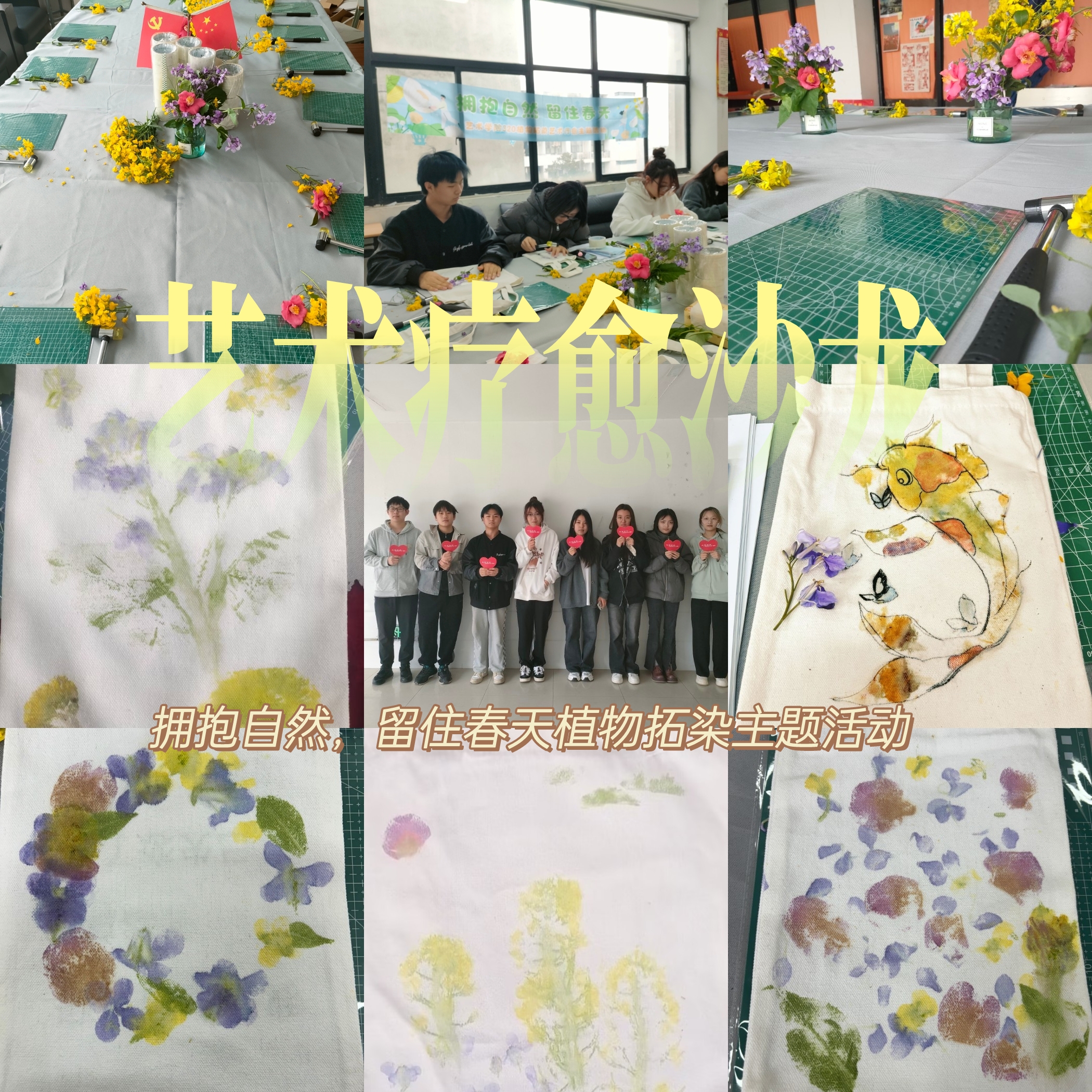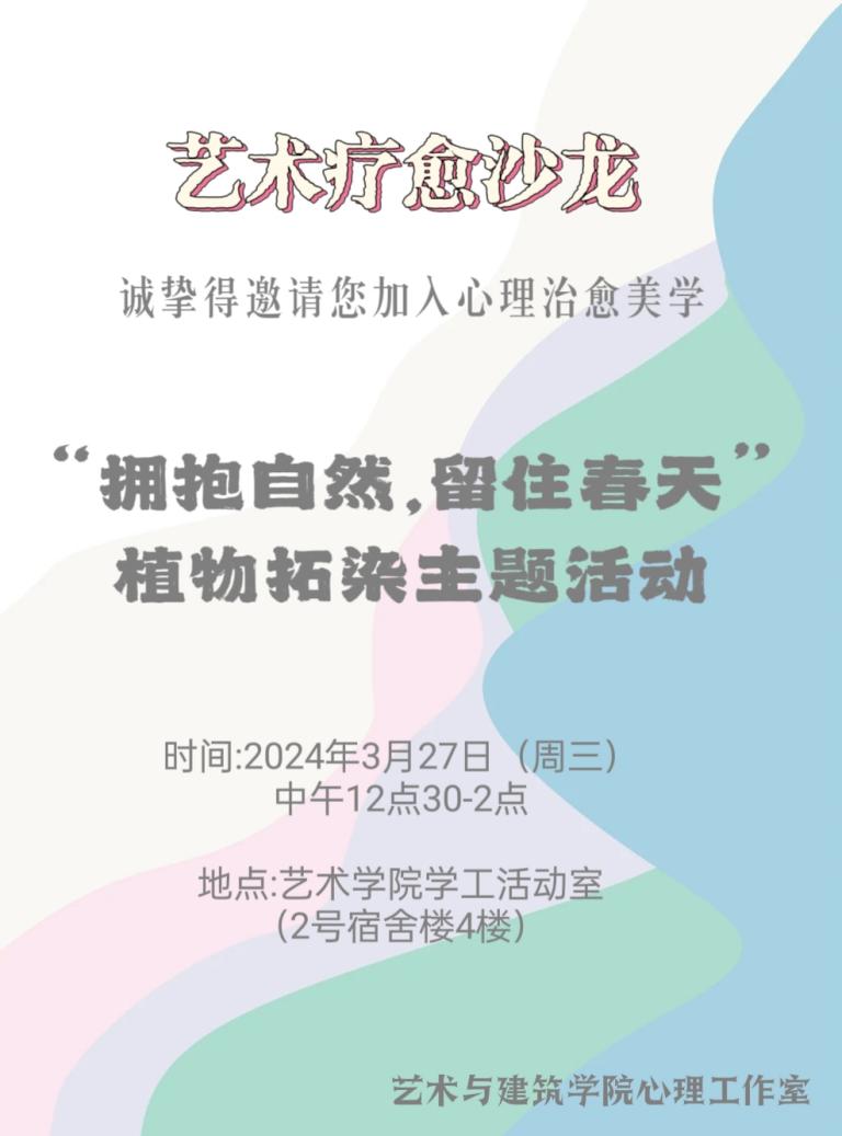 为落实立德树人根本任务,坚持健康第一的教育理念,把心理健康工作摆在重要位置,我院结合专业特色开展艺术疗愈沙龙系列活动。阳光明媚的三月春天,给人带来温暖和希望,仿佛一切都在蓬勃发展,为营造积极向上的校园氛围,我院于3月27日中午开展“拥抱自然,留下春天”植物拓染主题活动。