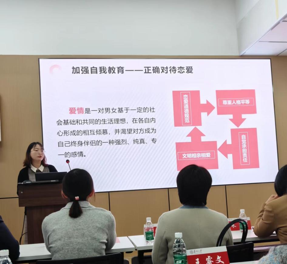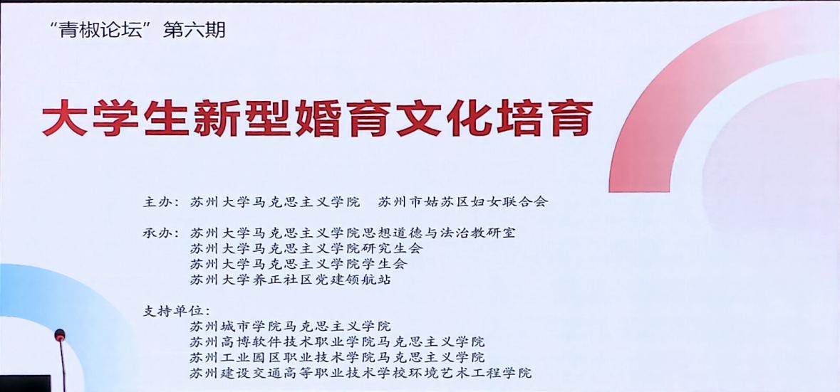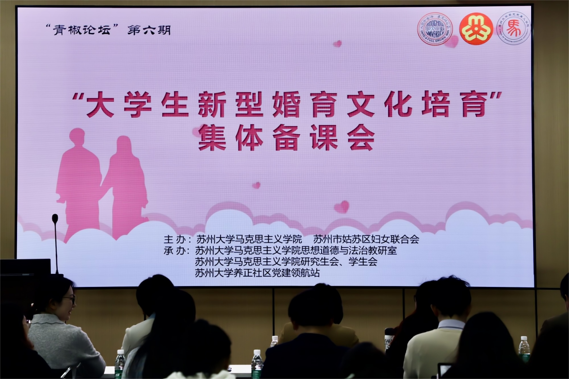 为进一步贯彻落实习近平总书记关于注重家庭家教家风建设的重要论述精神,积极培育新型婚育文化,帮助大学生树立积极美好健康的婚育观,3月31日上午,由苏州大学马克思主义学院、苏州市姑苏区妇女联合会主办,苏州大学马克思主义学院德法教研室等承办,我校马克思主义学院等部分在苏高校马院参与支持的“大学生新型婚育文化培育”集体备课会在苏州大学东校区养正社区理响讲堂成功举办。