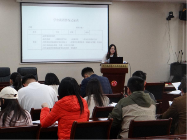 为认真落实《关爱青少年生命健康“润心”行动实施方案》要求,进一步规范和系统化建设我校学生心理档案,加强对学生心理问题的预防、识别和干预,学生健康中心于4月11日组织了一场面向全体专兼职辅导员的专题培训会。本次培训由学生健康中心吴诗老师主讲,培训主要包括两方面内容,一是心理档案信息化建设的要求和重要性;二是加强辅导员谈心谈话的能力,旨在通过培训帮助辅导员在谈心谈话对学生情况做到“三个清楚”:清楚学生的个体情况,如学生生理、心理特点,在校的学习情况、情绪状态、人际关系等;清楚学生的家庭和家教情况,如家庭结构、教养方式、亲子关系等;清楚学生目前心理健康状况和风险等级。