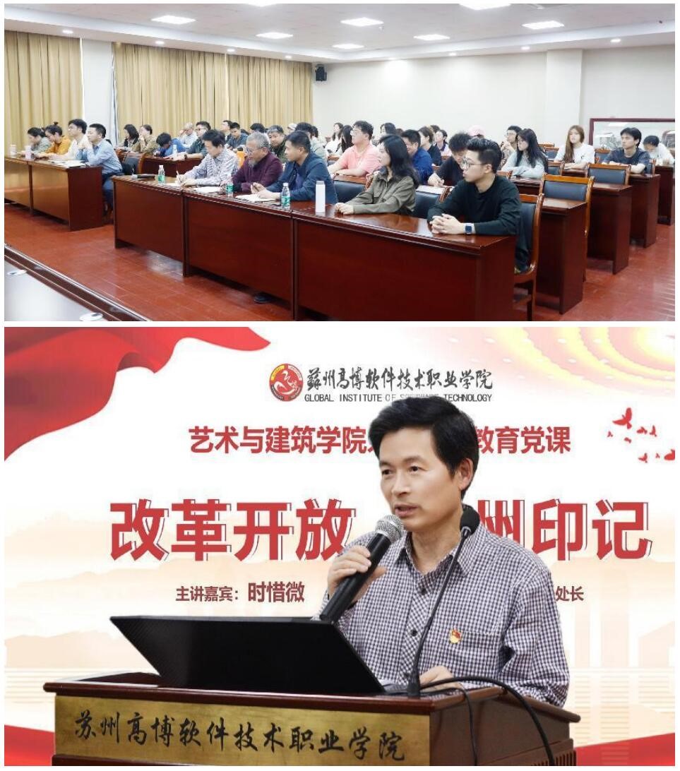党总支书记、副院长施建平作总结发言,十分感谢时惜微同志给我们全体党员、教职工、学生党员及入党积极分子上了一堂精彩而生动的专题教育党课。在学校高质量发展的背景下,我们要深入了解改革开放的苏州史,进一步增强我们建设好苏州这座具有2500年古城的信心和决心。我们要让改革开放精神转化为守初心、担使命、建新功的举措,以实际行动坚定理想信念,立足岗位做奉献,用满腔热血书写教育新篇章。(艺术与建筑学院党总支)