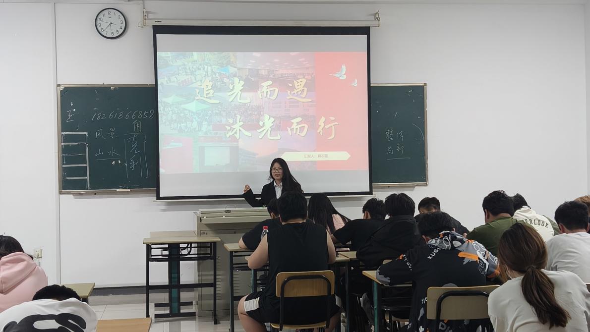 “追光而遇,沐光而行”。宣讲团成员夏志雯作为一名受益于国家和学校资助政策的学子,向学弟学妹们分享了自己在学校受到的资助经历,将自己感受到的温暖传递给大家。在宣讲过程中,夏志雯主动与学弟学妹们进行互动,积极回答同学们对学校资助政策存在的疑问,并结合自身经历,鼓励大一学生要自立自强、勇敢追梦、不因暂时的家庭经济困难停下学习的步伐,坚定理想信念,心怀感恩之心,用自己的实际行动回报学校、社会。
