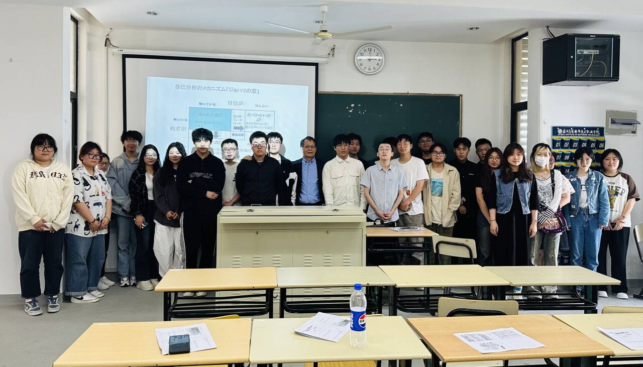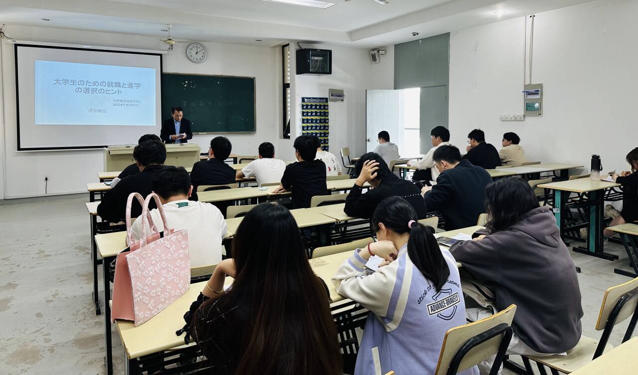为持续做好我院就业指导服务工作,进一步提升学生求职的综合素质和能力,引导学生树立正确的就业观,正确看待升学深造问题, 5月8日下午,我院在12-508举办了大学生就业指导及升学专题讲座。此次讲座特邀日本关西学院大学教师、苏州高博职业学院短期高级访问教授泽谷敏行担任主讲,我院全体应用日语专业的学生参加了此次讲座。