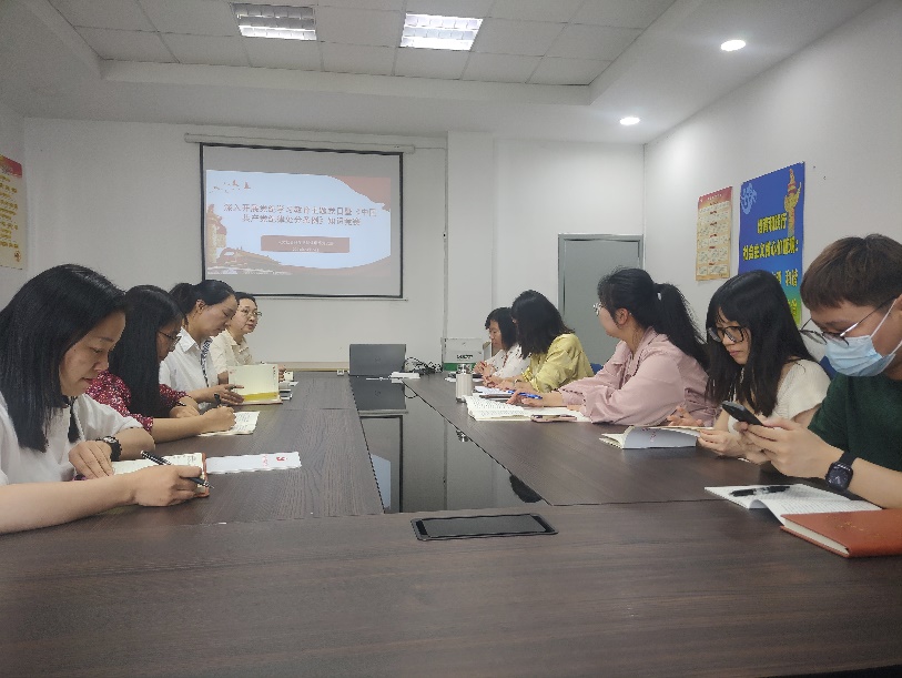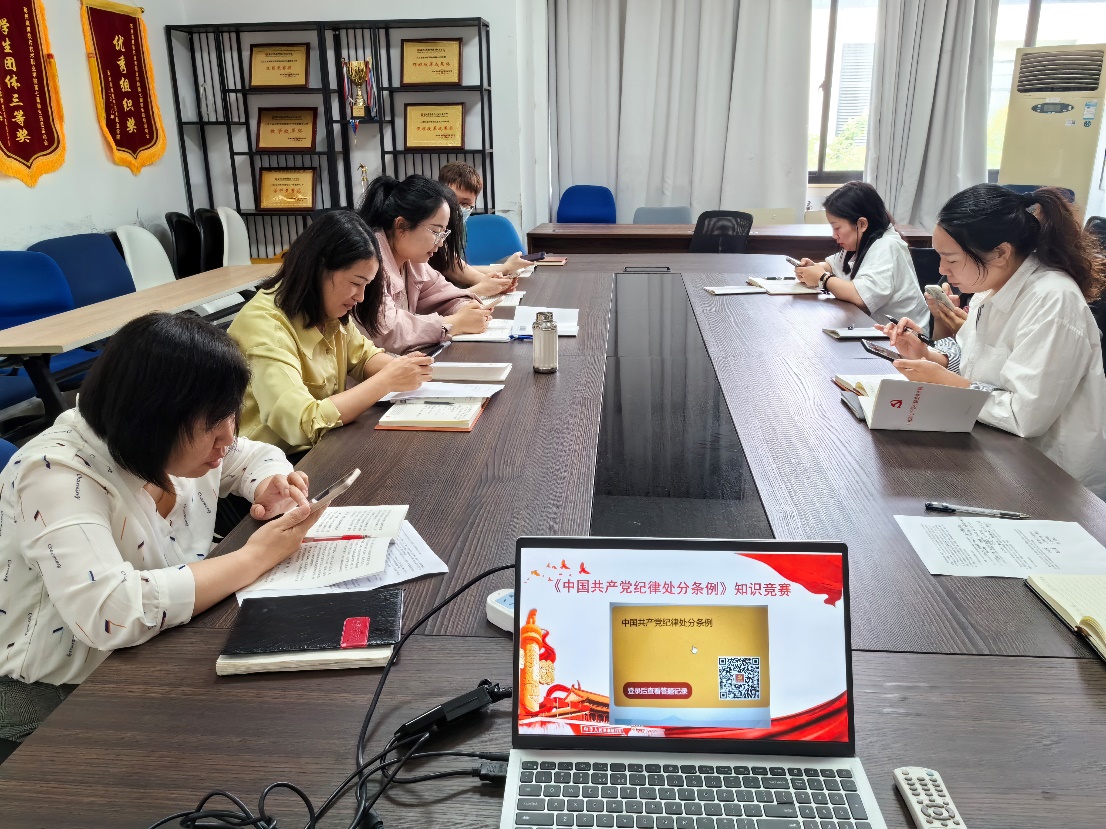 为学习贯彻习近平总书记关于党纪学习教育的重要讲话和重要指示批示精神,贯彻落实《中共苏州高博软件技术职业学院委员会关于开展党纪学习教育的实施方案》,5月15日下午,人文社会科学学院外语系党支部组织了“深入开展党纪学习教育主题党日暨《中国共产党纪律处分条例》知识竞赛”活动,带领支部全体党员教师加强党纪学习教育。会议由外语系党支部宣传委员马乐乐主持,全体教师党员参加。