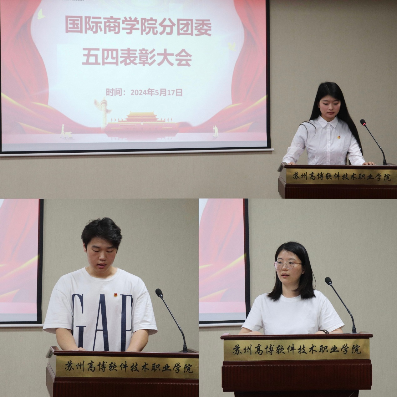 2024年5月17日星期五中午12点30分,国际商学院分团委在14-215报告厅召开了2024年五四表彰大会。参加此次会议的有国商分团委负责人姚瑶老师,辅导员谢杨琳和吕林峰老师,以及国际商学院第七届学生会和青年学习社全体成员,会议由吴文静同学主持。