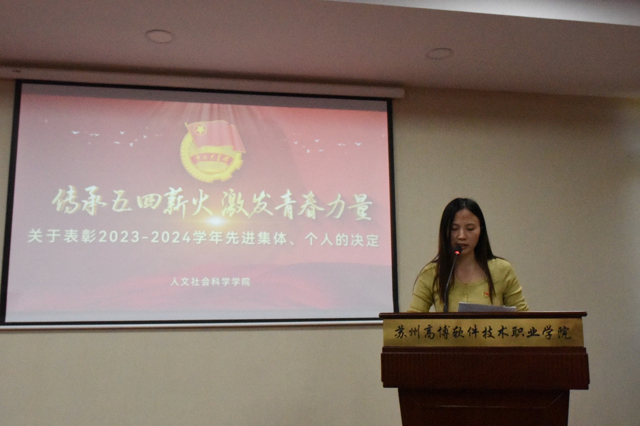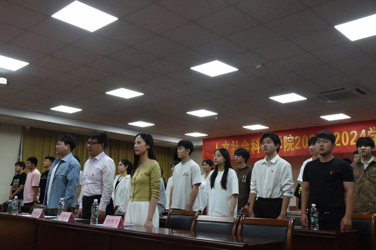 在庄严的国歌中,人文社会科学学院2023—2024学年五四颁奖典礼正式开始。