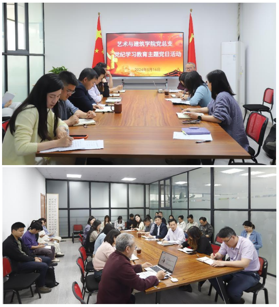 为深入学习贯彻习近平总书记关于党纪学习教育重要讲话和重要指示精神,扎实学习《中国共产党纪律处分条例》(以下简称《条例》),督促引导党员教师遵纪守法、廉洁自律,近日,艺术与建筑学院党总支在学院党员活动室开展全体党员“学条例·明党纪·守底线”党纪学习教育主题党日活动。由党总支书记、副院长施建平教授主持。