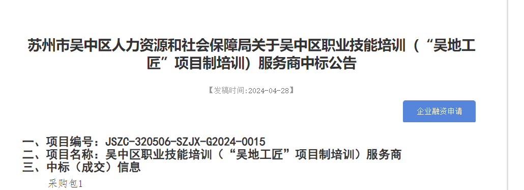 为进一步提升学院教育创新和技术培训经验。信息与软件学院与继续教育学院在通力合作下,在二十余家竞标单位中以88.8分成功中标吴中区2024年“吴地工匠”项目制培训—工业互联网工程应用技术培训项目。苏州市“吴地工匠”项目制培训是立足苏州经济,重点聚焦当地主导产业,培育具有时代特色的技能人才,实现技能人才的精准化培训。