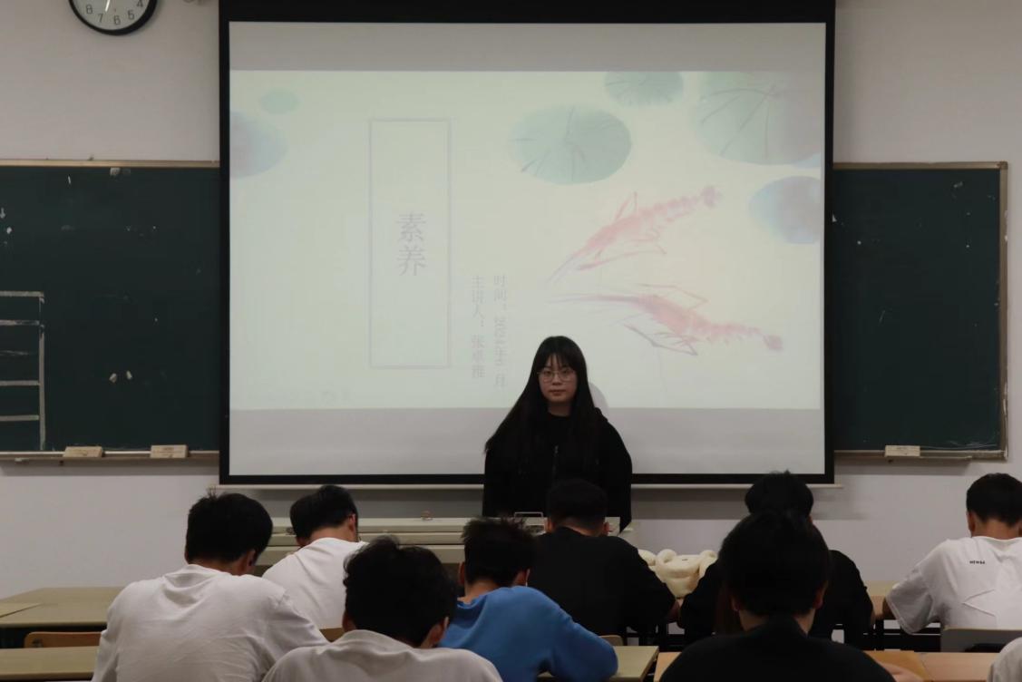 公开课伊始,张卓雅同学首先从素养的含义,重要性以及素养与能力的关系三方面进行了介绍。其次,培养素养是一个长期而全面的过程,可以从家庭,学校,社会教育中学习如何培养素养,告诉同学们要在生活中不断提升自己,不断提高专业能力来培养素养。