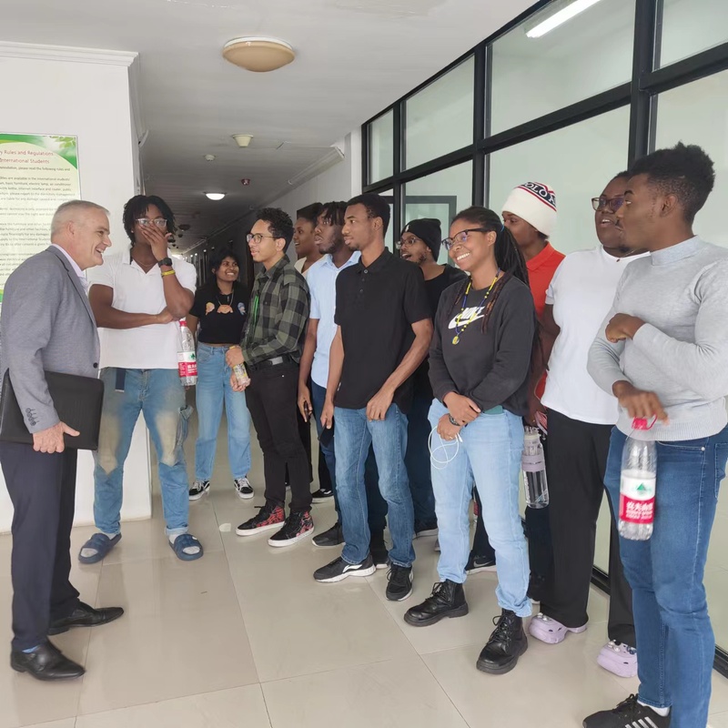应我校校长朱秀林的邀请,巴巴多斯西印度大学凯夫希尔分校校长克莱夫·兰迪斯(Clive Landis)一行6月6日访问我校。朱校长等相关领导在实训楼会议室亲切会见了克莱夫·兰迪斯校长一行,双方就进一步推进两校合作进行了深入交流。
