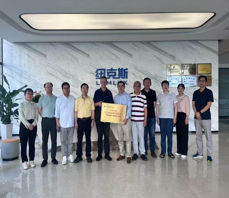 授牌仪式上,苏州高博信息与软件学院院长孙涌、江苏省职业教育软件技术“双师型”名师工作室领衔人李月峰、苏州大学嵌入式仿生智能研究所副所长李云飞、苏州纽克斯电源技术股份有限公司总经理浦敏及高层管理人员共同见证了这一历史性时刻。