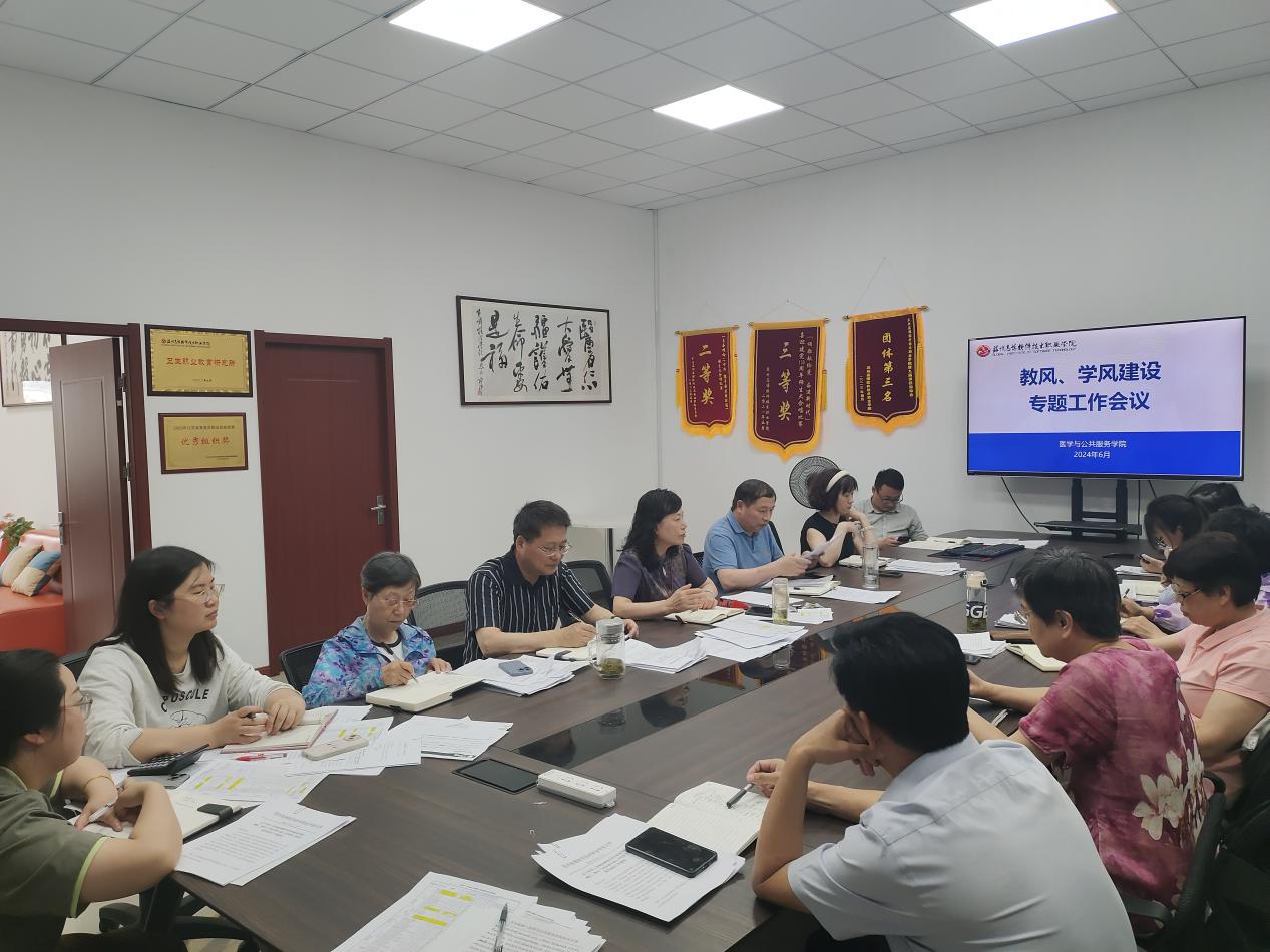 为做好2024级人才培养方案制定(修订)工作,促进专业建设与发展,6月6日上午,医学与公共服务学院召开专业建设指导委员会2024年工作会议,讨论2024级人才培养方案,学院两位产业教授、党政领导、系部主任、专业负责人及特聘教授代表参加本次会议。会议由副院长蔡金娟主持。