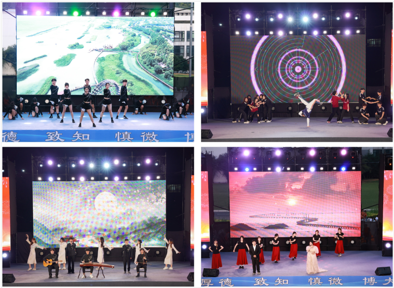 由毕业班辅导员代表带来的朗诵《给毕业班的散文诗》真挚而热烈,饱含深情,将整个晚会氛围推向高潮。辅导员老师们结合日常工作与学子们共同细数大学三年的点点滴滴,满怀真挚祝福与期许为即将背起行囊踏上征途的2024届毕业生们送上祝福,愿其乘风踏浪,勇往直前。整场晚会精彩纷呈,现场灯光璀璨、气氛热烈、欢声雷动,师生好评如潮,高潮迭起,取得了圆满成功。