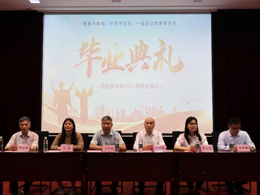 6月14日下午13点整,在学校大报告厅举行了国际商学院2024届学生毕业典礼。学院党总支书记王则斌教授,院长乔桂明教授,学院领导班子成员,毕业班辅导员,2024届毕业生代表参加典礼。毕业典礼由国商党支部副书记张志豪主持。