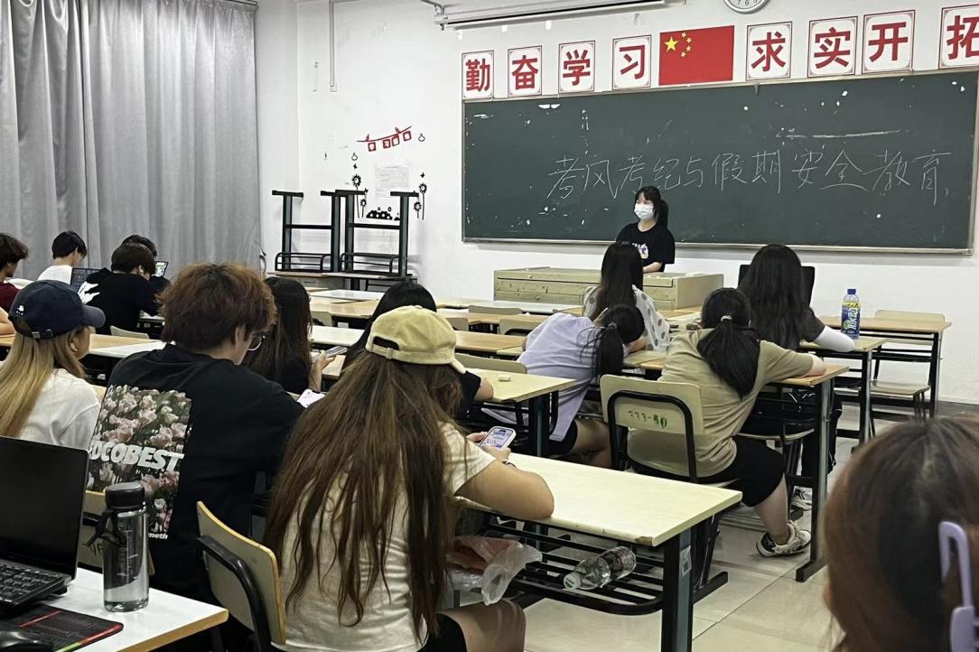 为进一步加强考风考纪工作,增强学生诚信意识,端正学习态度,严肃考风考纪,弘扬院风、涵养学风、端正考风,引导广大同学认真备考、诚信应考,营造“明纪律、守诚信”的考试氛围,国际商学院2023级辅导员于6月18日18点30分在各班级组织开展考风考纪教育主题班会。