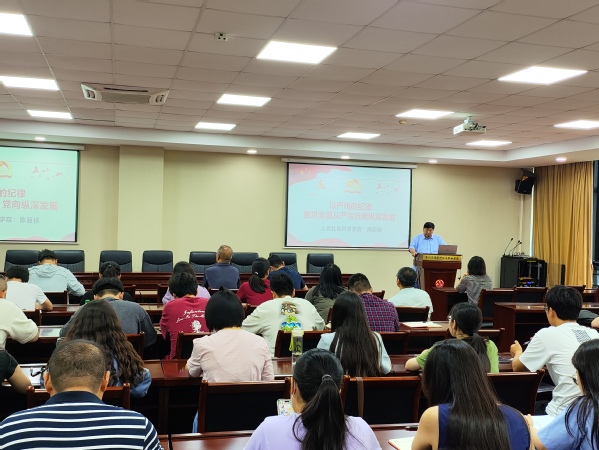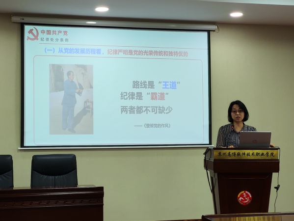 为传达学习习近平总书记关于开展党纪学习教育的重要讲话和重要指示精神,6月21日中午,机电工程学院党总支在14-215会议室开展主题为“以严明的纪律推进全面从严治党向纵深发展”的党纪专题学习报告会。本次报告会由机电工程学院党总支书记廖振强主持,人文社会科学学院陈丽侠老师担任主讲教师,全体党员、发展对象、入党积极分子参会。