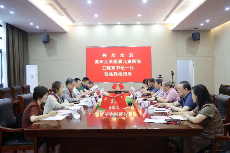 6月21日,苏州大学附属儿童医院党委书记王晓东、院长办公室主任凌靓、护理部主任姚文英、党委办公室副主任兼法务办公室主任李磊、组织人事处处长钱丽萍、教育培训处处长周万平一行专家领导莅临学校指导交流。学校校长朱秀林,党委书记薛辉,副校长邹学海,副校长周肖兴,校长特别助理、医学与公共服务学院名誉院长薛小玲,医学与公共服务院长孙小娅,副院长章晓莉参加会议,会议由校长朱秀林主持。