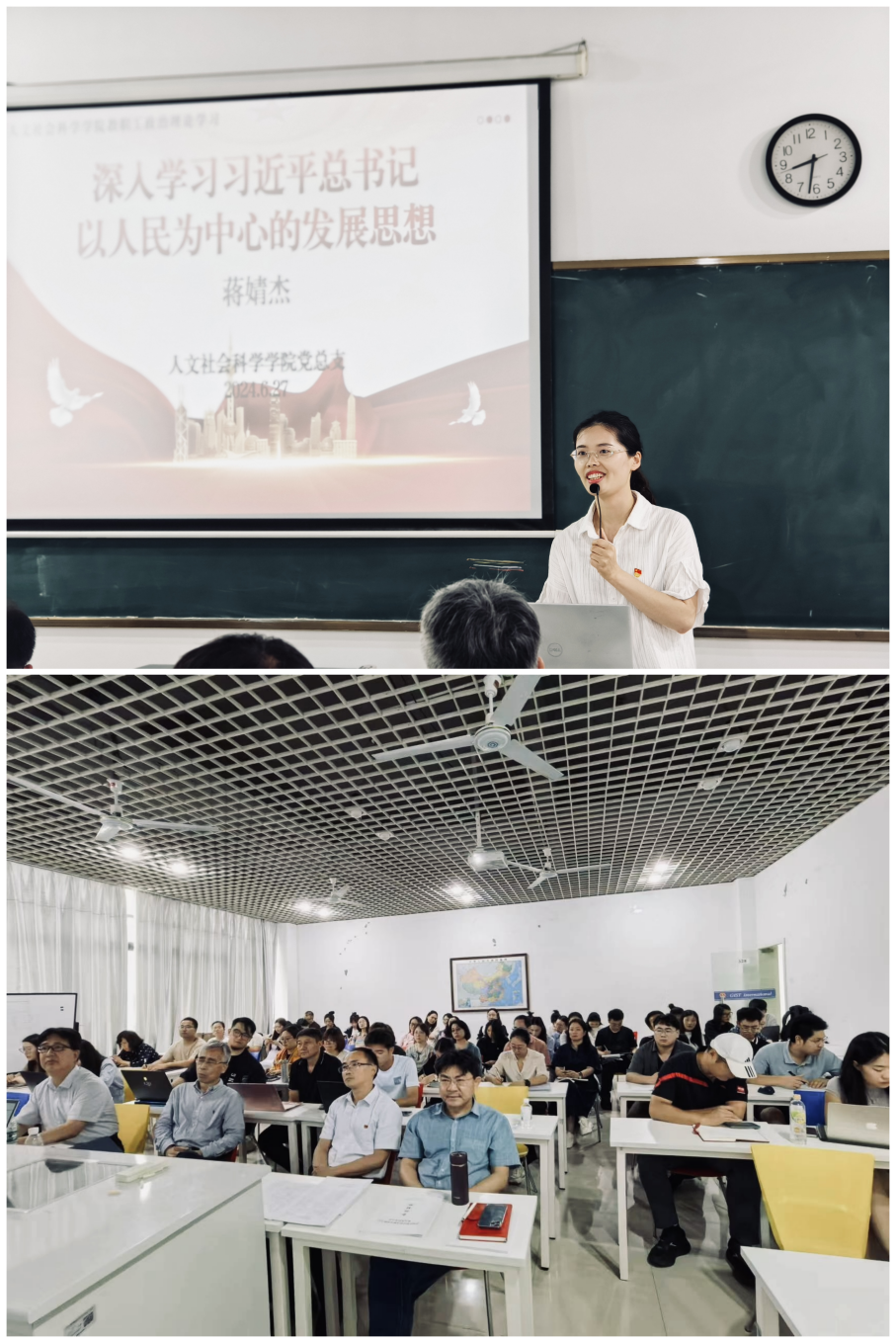 为加强学院教职工政治理论学习,根据学校党委工作部署和党总支学习计划安排,结合相关学习要求,6月27日,人文学院党总支组织全体教职工政治理论学习,此次学习由校马克思主义学院宣讲团队成员、人文学院社科部党支部书记蒋婧杰作了题为 “深入学习习近平总书记以人民为中心的发展思想”的辅导报告。校长助理、人文学院党总支书记吴建明主持报告会。