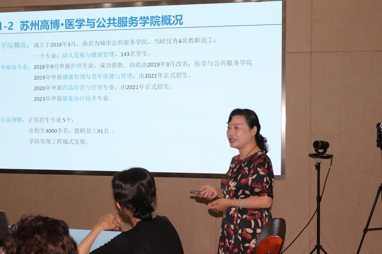 随后,医学与公共服务学院院长孙小娅详细介绍了学院的办学特色、发展历程、专业设置、师资力量以及未来的发展方向。她表示,我校的医学与公共服务学院一直锚定卫生人才需求,确立德才并举育人理念,“内配外引”构建教学团队,政校行企深度合作促进就业,为江苏区域提供了一批优质的卫生人才。