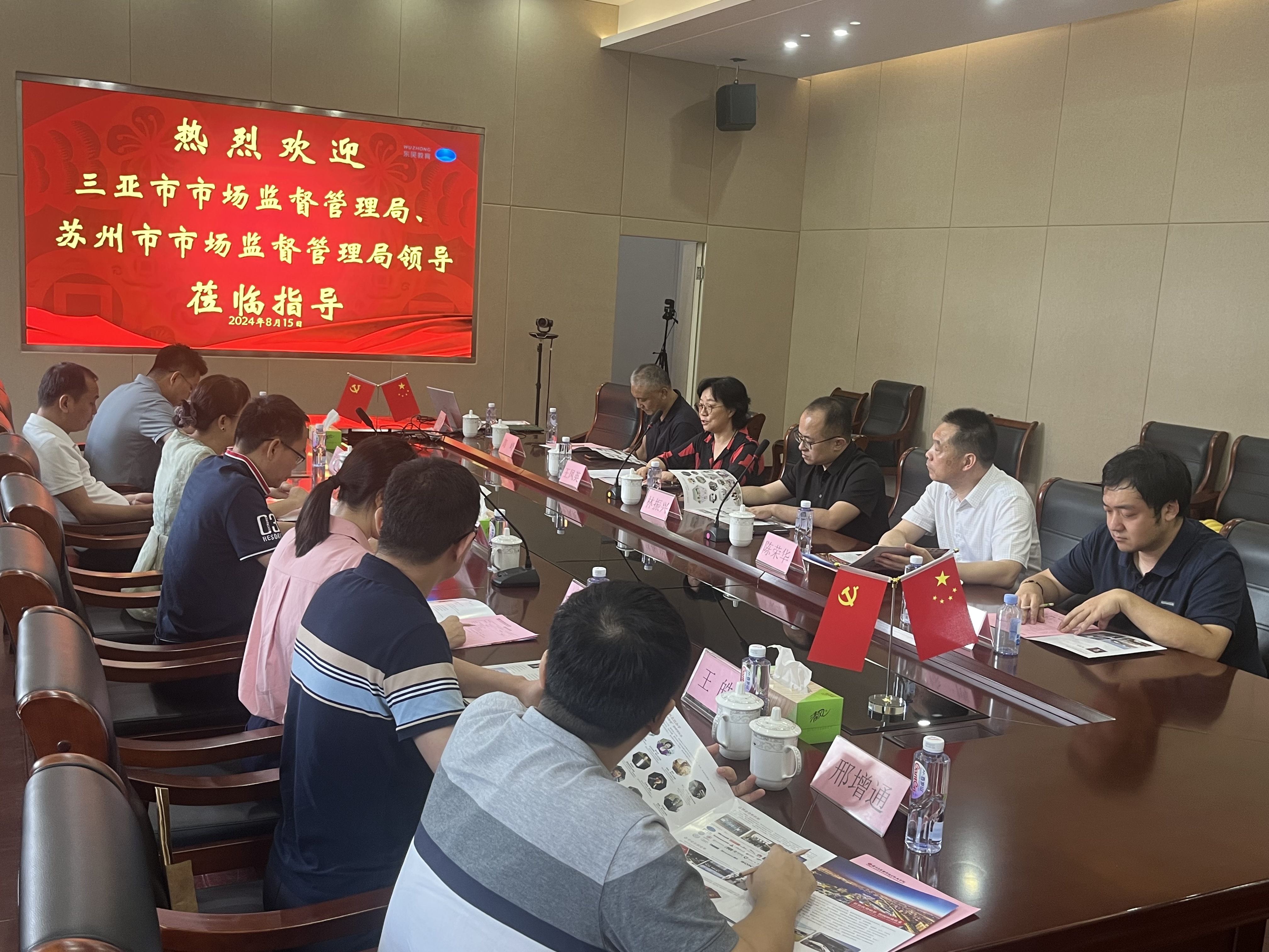 8月15日上午,海南三亚市场监督管理局陈利琛一行8人,莅临我校考察食品安全工作,苏州市市场监督管理局副局长林振兴及相关负责同志陪同考察,王凤英副校长及后勤管理处相关负责人出席此次考察交流活动。