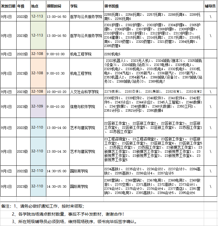 关于2024-2025-1学期2022级2023级教材发放安排的通知
