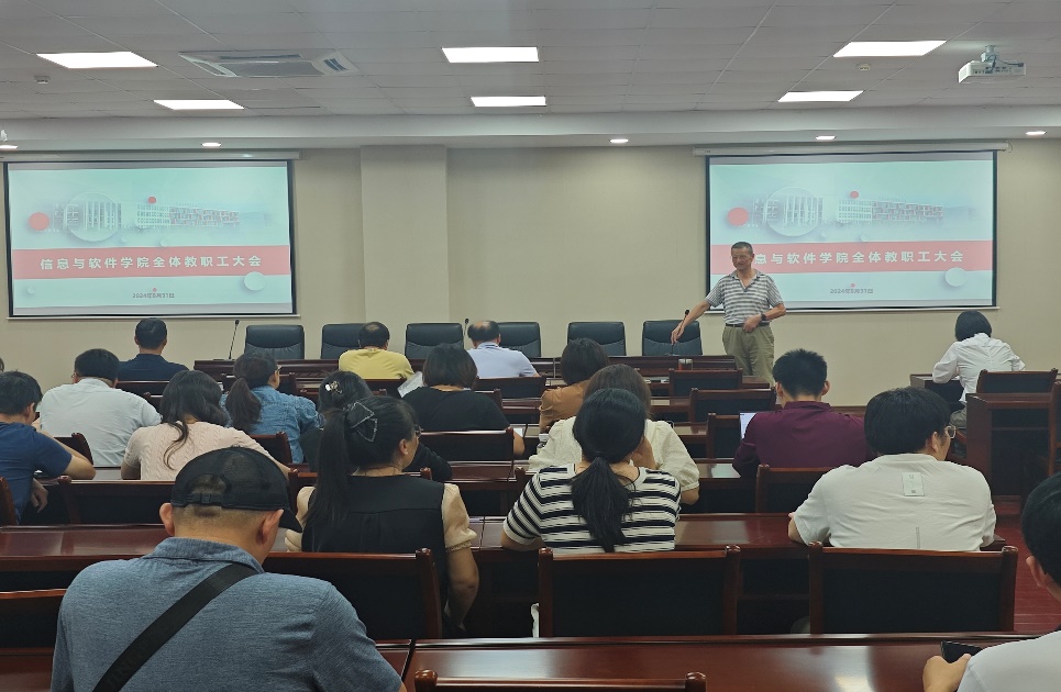 郑兰松副书记对2024年度学校的招生情况进行了通报,信息与软件学院招生人数达到七百余人。郑书记强调,随着学生人数的增加,老师们面临着更大的教学挑战和责任,因此,提升自身的教学能力和专业素养显得尤为重要。