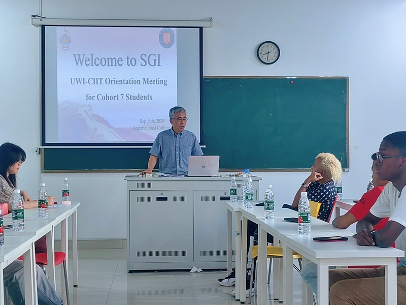 9月6日上午,国际学院在行政楼328教室举办西印度大学中国信息工程学院第七批留学生开学典礼。我校校长助理兼国际学院院长黄兴教授、国际学院工作人员、留学生任课教师以及全体留学生新生出席了开学典礼。开学典礼由国际学院学生管理科科长吴童主持。