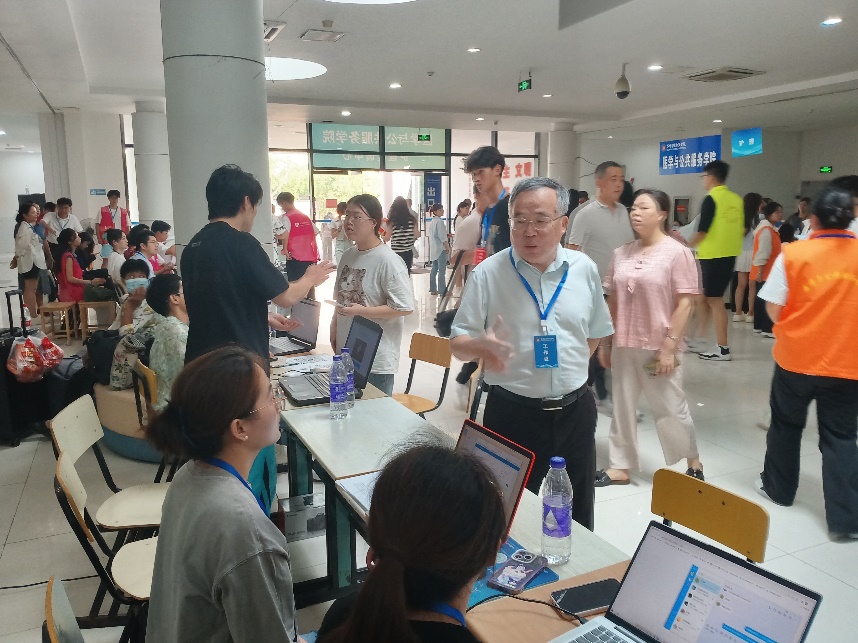 分管学生工作的徐子良副校长亲自前来我院指导迎新工作,对各个环节进行了细致的检查和指导,确保迎新工作有序进行。