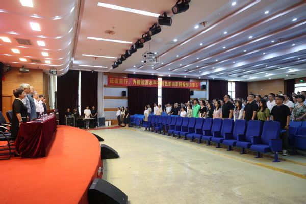 大会在庄严的国歌声中拉开帷幕,首先由副校长周肖兴宣读《关于表彰在校连续从教满十年、十五年教职工的决定》,随后由党委副书记、副校长徐子良宣读《关于表彰2023-2024学年获得市厅级以上奖项集体和个人的决定》;校长朱秀林为获得2023年度全省高校“最佳党日活动”的人文社会科学学院外语系党支部代表以及获得2024年学校固锝奖教基金的老师们颁奖。勉励广大师生以先进为榜样,立德修身,真正把为学、为事、为人统一起来,坚守初心,勇于担当,当好学生成长的引路人。