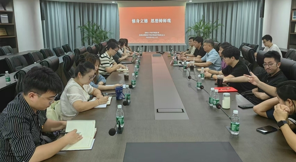 王则斌书记在会议上强调了师德师风建设的重要性,指出良好的师德师风,是新时代教师精神面貌和优秀特质的体现,更是党和人民的殷切期待,新时代高校教师应该“有德有才、德才兼备”,要求大家以师德师风建设标准严格要求自己,努力做到“爱国守法、敬业爱生、教书育人、严谨治学、服务社会、为人师表”。同时叮嘱青年教师要加强自身理论修养、严于律己、严谨治学,走上三尺讲台,教书育人;走下三尺讲台,为人师表。心中有爱心、肩上有责任,做“有理想信念、有道德情操、有扎实知识、有仁爱之心”的“四有”好老师。