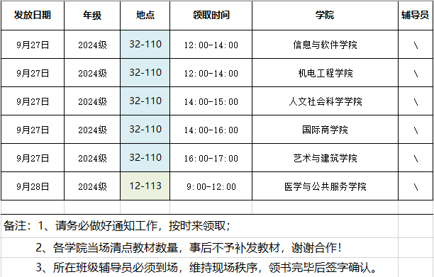 关于2024-2025-1学期2024级教材发放安排的通知
