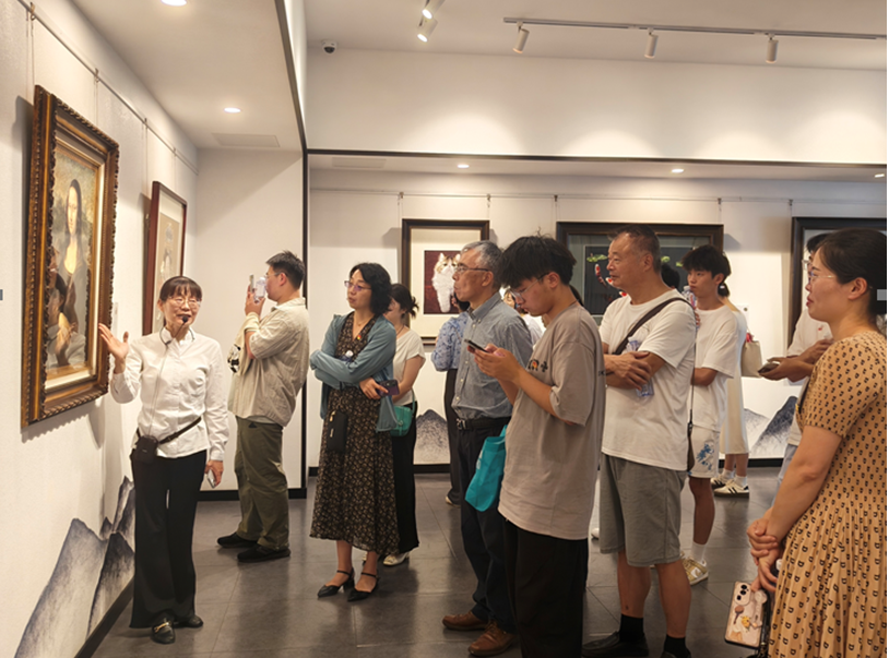 寻访苏绣之美,感受苏绣魅力。在讲解员的带领下,大家走进古色古香的绣史馆,沉浸式参观馆内的花鸟、山水、风景、人物、动物、古画等各类苏绣作品,刺绣大师们用诗意的灵感、精湛的技艺,成就了永恒的传世珍品。大家不仅了解了三千多年来刺绣技艺发展的历史脉络,而且学习了种桑、养蚕、缫丝、炼染、丝织等刺绣相关的工艺知识,同时对苏绣作品承载的意匠之美、文化基因、艺术语言有了近距离、形象化的感受。