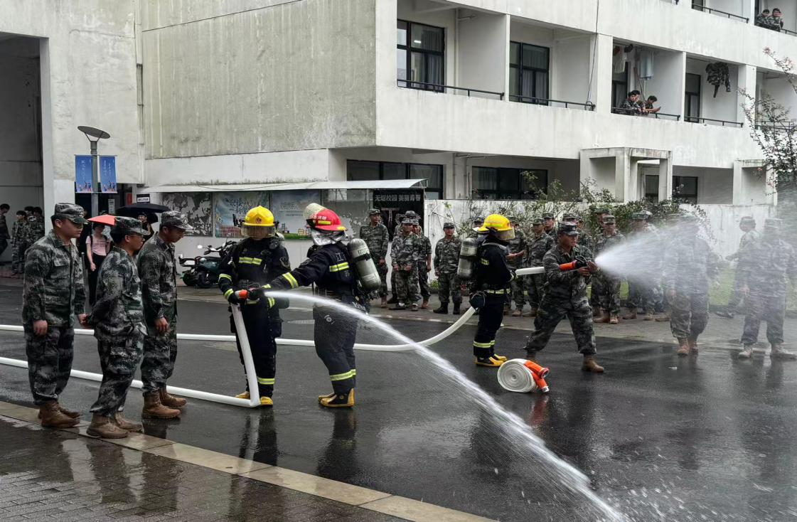 活动尾声,在科技城消防中队的指导下,组织学生代表学习高压水枪的使用方法并亲身体验使用。