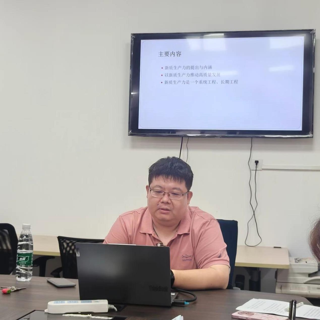 会议第二阶段,臧政教授为我们带来了“新质生产力:中国经济高质量发展新动能”的专题讲座。臧教授以极富学理性和感染力、逻辑紧凑、生动幽默的授课风范为我们深刻阐释了新质生产力的提出和内涵、以新质生产力推动高质量发展、新质生产力是一个系统工程和长期工程三个方面内容。在新质生产力的提出及内涵方面,臧教授援引了不同时期的相关专著及习近平总书记就新质生产力的多场讲话,列举了四次工业革命的发展历程,帮助大家厘清新质生产力提出的必然性;在以新质生产力推动高质量发展方面,臧教授首先带领大家学习了党的二十届三中全会对进一步推动发展新质生产力的新要求,结合我国在载人航天、卫星导航、超级计算、量子信息、新能源技术等领域已经形成的先发优势或非对称优势,指出我国已进入高质量发展阶段,具备实现新的更高目标的雄厚物质基础;最后,臧教授又通过横向和纵向的对比,深刻阐释了新质生产力提出的重大意义。臧教授的讲座用大量的实证数据和调查研究,讲出了发展新质生产力的中国自信,给我们做好新质生产力专题的备课工作提供了全新的视角,让人受益匪浅。