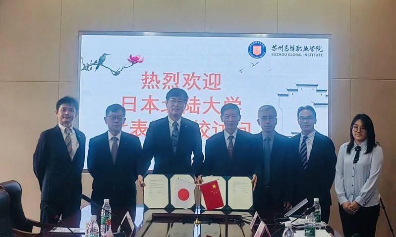 会谈结束后,两校举行了友好交流合作协议的签约仪式,朱秀林校长和小仓勤理事长分别代表双方签署了协议。