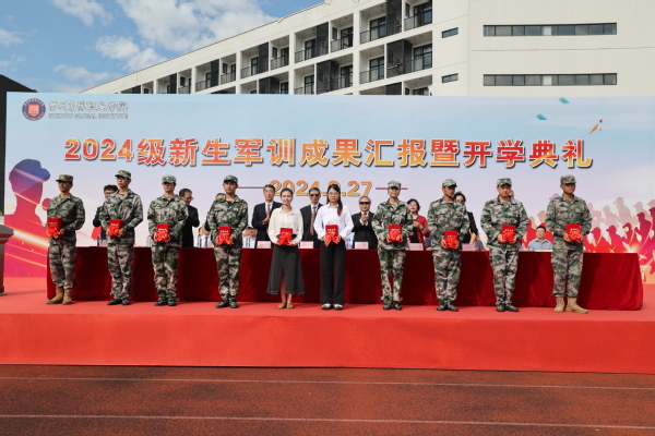 各二级学院院长,党总支书记、副书记,学工办主任及相关职能部门负责人,新生辅导员,教师代表以及全体承训教官和2024级新生参加活动。军训成果汇报由校党委副书记、副校长徐子良主持。