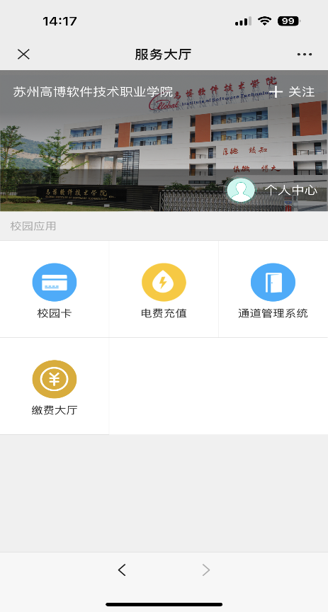1. 搜索并关注苏州高博微校公众号或扫描二维码进入公众号;