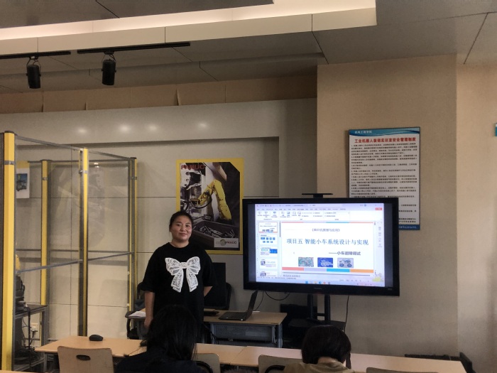 赵雪老师以《单片机原理及应用》课程中的《智能小车系统设计与实现——小车避障调试》内容进行了展示。此次示范课采用理实一体化教学方式,以电动汽车智能驾驶实例引出如何运用单片机来实现小车避障功能。