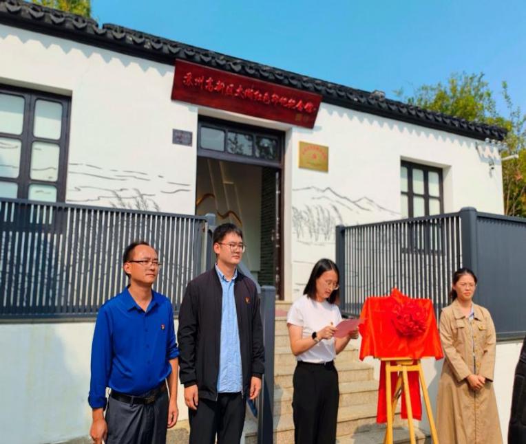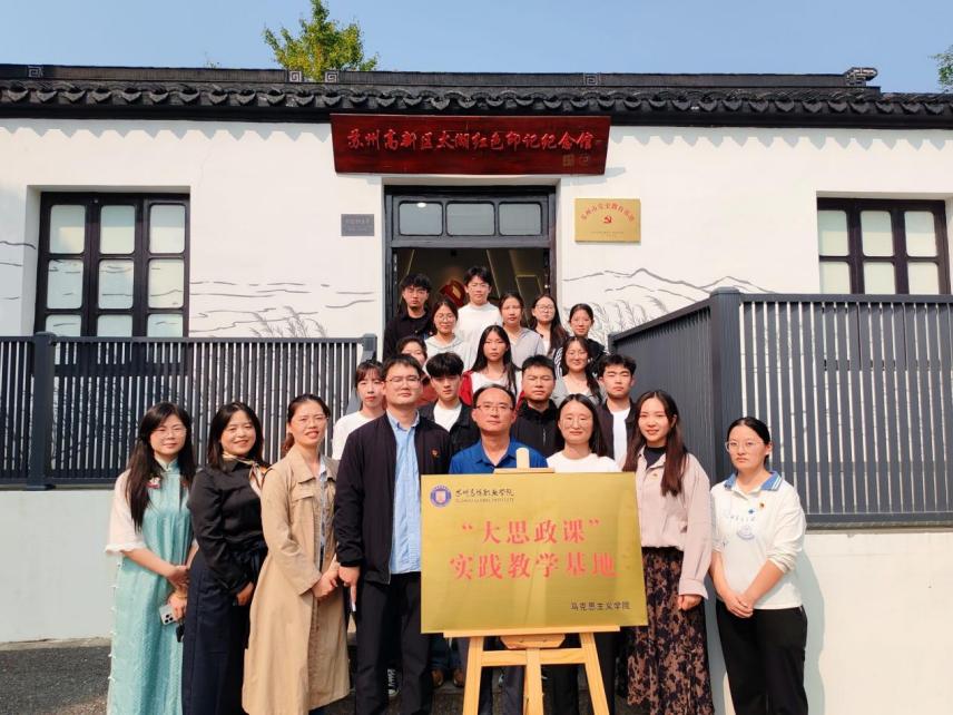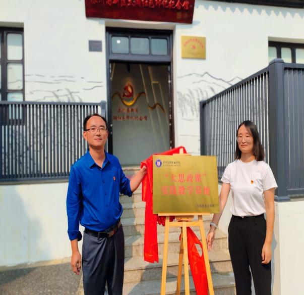 为深入贯彻落实习近平总书记关于“大思政课”重要指示批示精神,充分发挥“大思政课”实践教学基地育人功能,10月11日下午,我校马克思主义学院与苏州高新区太湖红色印记纪念馆举行“大思政课”实践教学基地共建揭牌仪式。苏州高新区石帆村党支部副书记陆晨、马克思主义学院院长吴歧范、校团委书记王鑫、石帆村党支部党员代表、社科部党支部师生代表及9名学生志愿讲解员共同参加了本次揭牌仪式。仪式由社科部党支部书记蒋婧杰主持。