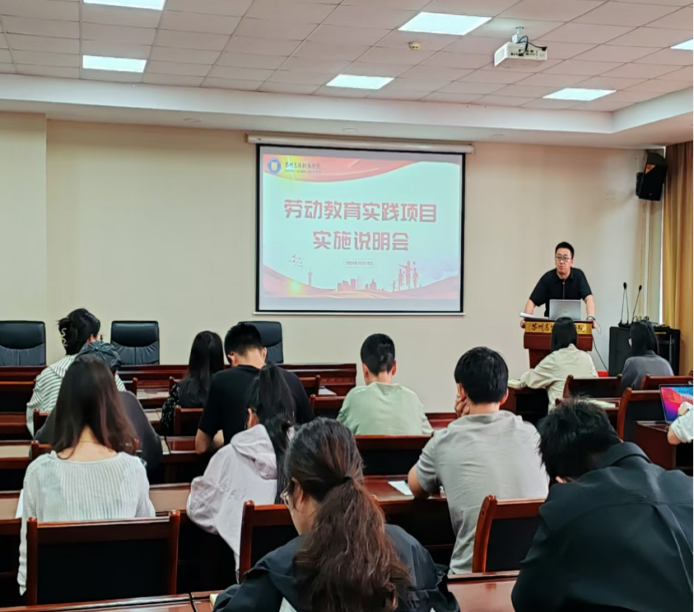 为全面推进我校《劳动教育》课程建设,10月18日下午1:30,教务处、人文社会科学学院劳动教育教研室在行政楼215组织召开《劳动教育》实践项目实施说明会,教务处副处长胡玮、劳动教育教研室主任陈丽侠及各二级学院、行政部门60位实践项目负责人参加。