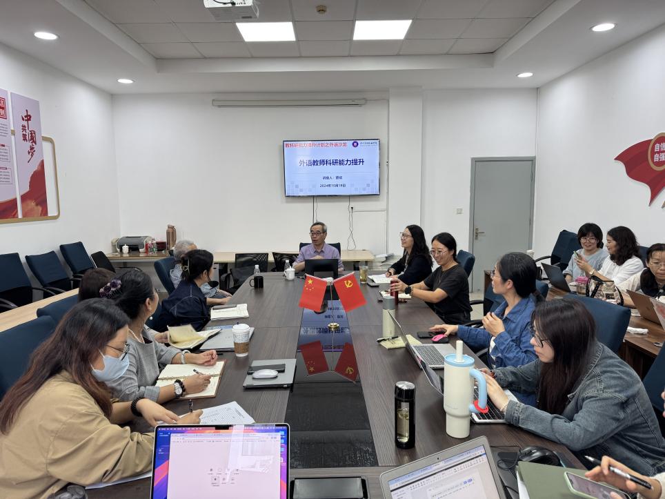 为全面提升教师的学术科研能力,促进教师个人发展,10月18日下午,人文社会科学学院外语系举办了教师科研能力提升专题讲座,邀请河海大学外国语学院原院长蔡斌教授作了题为“立足教学,关注特色——谈科研项目申报”的讲座。本次讲座由人文学院副院长兼外语系主任马亚丽主持,外语系全体教师参加了讲座。