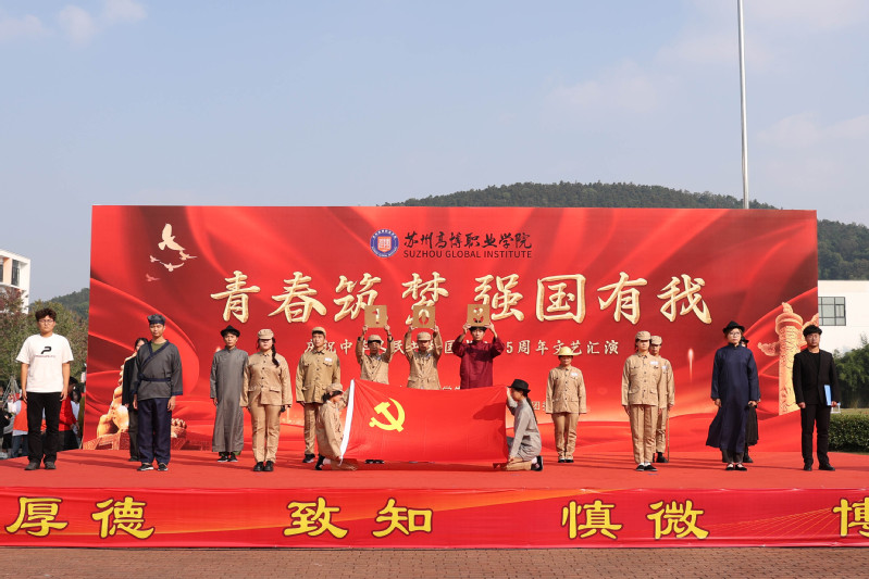 青春告白祖国,强国复兴有我。为深入学习贯彻习近平新时代中国特色社会主义思想,引导师生传承红色基因,赓续红色血脉,展现我校师生积极向上的精神风貌。10月23日下午,学校“青春筑梦,强国有我”庆祝中华人民共和国成立75周年文艺汇演在国旗广场拉开帷幕,学校党委副书记、副校长徐子良出席活动,全体学生管理工作人员和1000余名学生观看演出。