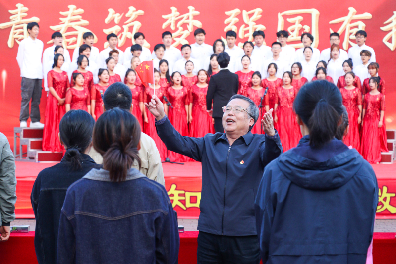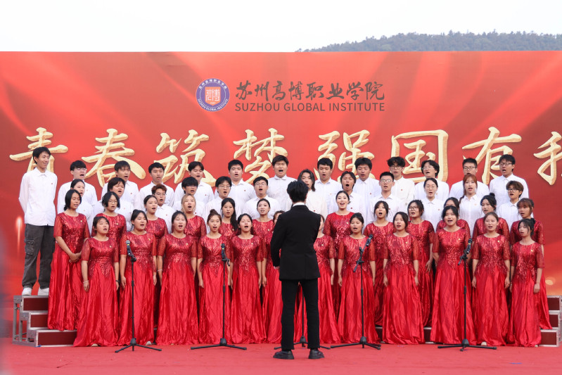 最后,大合唱《歌唱祖国》将整个汇演气氛推向高潮,在徐子良副书记的指挥下,现场师生全体起立,挥舞国旗,齐声高歌。全体高博师生饱含深情,用歌声告白祖国,唱出对伟大祖国的热爱和祝福,唱出全体高博学子树立远大理想,练就过硬本领,锤炼品德修为,努力成为德智体美劳全面发展、又红又专、能够担当民族复兴大任的时代新人的决心!