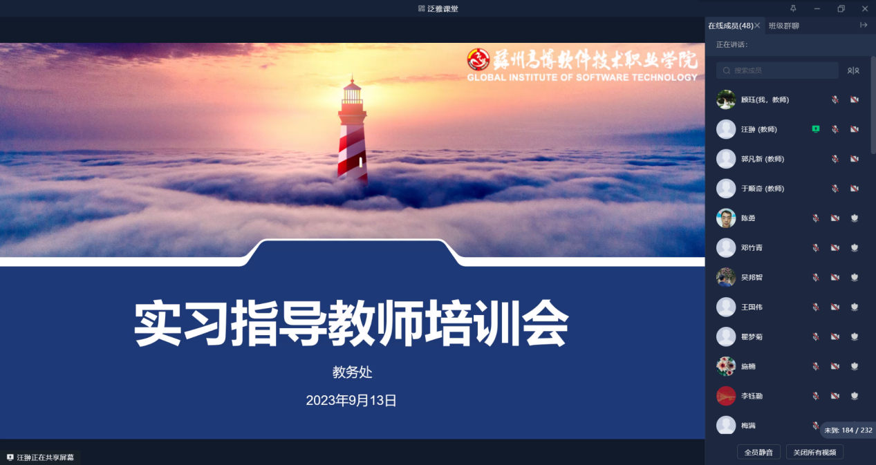 为贯彻落实教育部等八部门印发的《职业学校学生实习管理规定》,推动实习实践工作高质量发展,学校于9月13日开展了岗位实习指导工作培训活动。此次培训采用线上方式开展,校友邦于顺奇老师、实习指导教师及各学院分管实习工作院领导参培,培训活动由教务处汪翀副处长主持。
