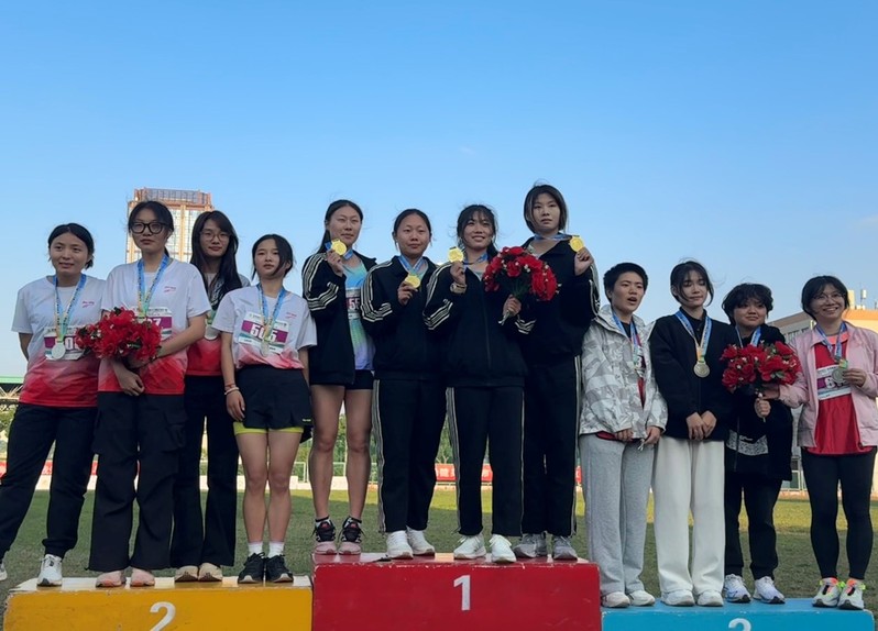 在为期两天的比赛中,我校田径队队员们团结一致,奋勇拼搏,展现了顽强的意志和卓越的竞技水平。经过紧张激烈的比拼,我校选手在男子组100米、标枪、铁饼、三级跳远和女子组100米、400米、800米、1500米、铅球、铁饼、跳高、跳远以及4×100米接力等项目中共获得13枚金牌,并在男子铁饼、标枪、跳远、三级跳远以及女子200米、800米、1500米等项目中获得5枚银牌和4枚铜牌,充分展示了我校田径运动的综合实力。