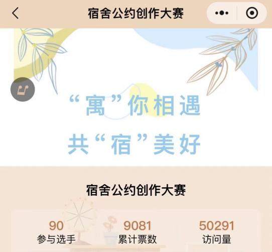 此次大赛的开展吸引了众多宿舍积极参与,通过线上线下相结合的方式总计参与宿舍90间,线上累计投票数9081票,访问量达50291人次。各个参赛宿舍精心构思,所创作的公约内容丰富多样,涵盖作息安排、卫生维护、公共物品使用等多方面,此外,为了增加公约的趣味性和生动性,学校还鼓励参赛宿舍提交宿舍成员或宿舍集体的照片、画像等素材,以及集体署名的手写材料。